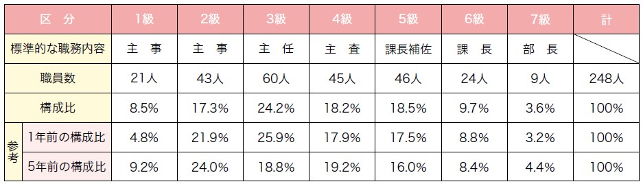 (7)一般行政職の級別職員数の状況(令和7年4月1日現在)