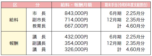 (9)特別職の給料・報酬の状況(令和7年4月1日現在)