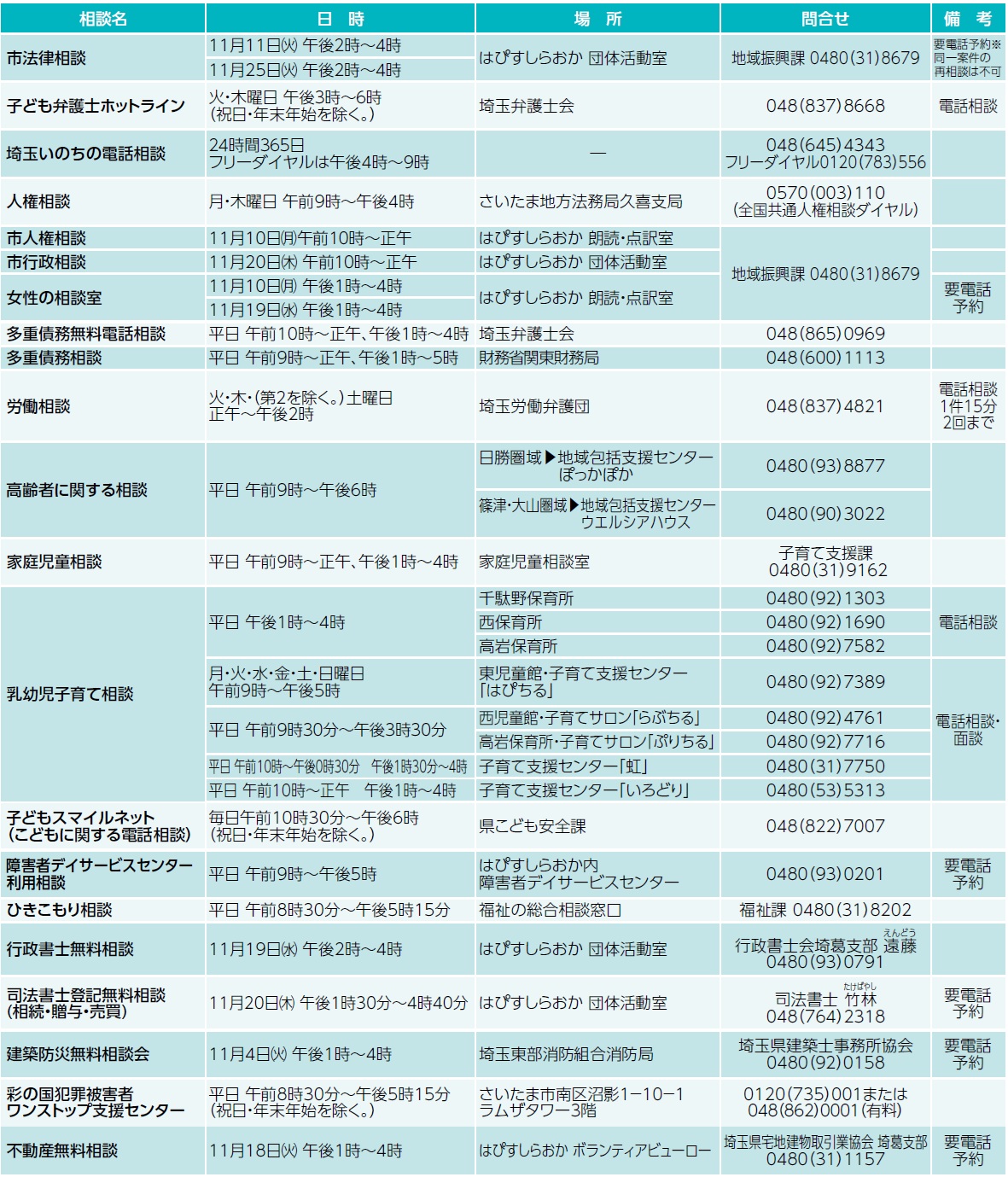 くらし 11月の無料相談 34/35 前の記事 次の記事 発行日 : 2025年10月01日 自治体名 : 埼玉県白岡市 広報紙名 : 広報しらおか 2025年10月号 No.695 ※11月4日(火)から予約を受け付けます。 Tweet シェアする なし梨キャンペーン タイトル募集中 その他のお知らせ(広報しらおか 2025年10月号 No.695)