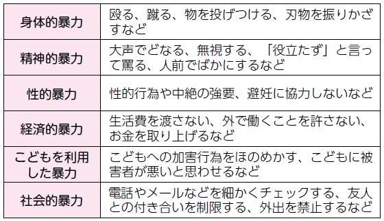 配偶者(内縁関係などを含む。)や恋人などの間柄にある、またはあった者から振るわれる暴力をいいます。「配偶者からの暴力及び被害者の保護に関する法律」では、被害者を女性に限定していません。