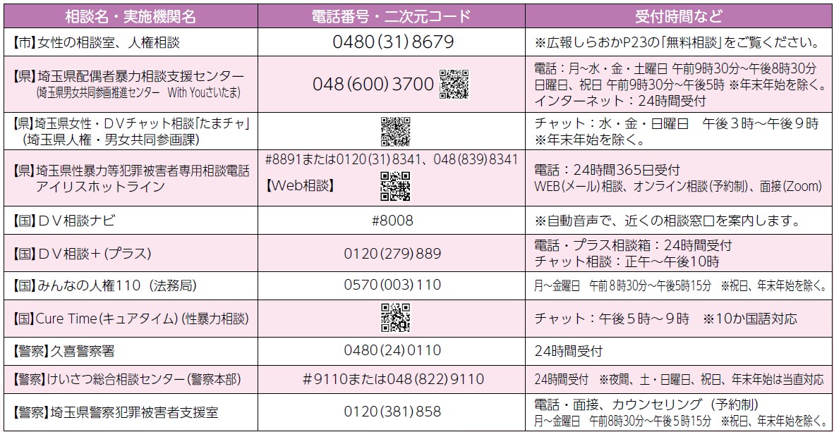 ◆DVに関する主な相談窓口《緊急の場合は、迷わず110番!!》
