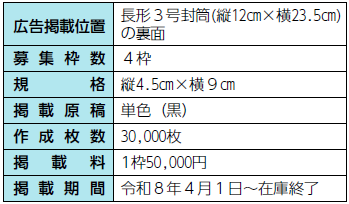 必要書類:伊奈町業務用封筒広告掲載申込書、広告の見本