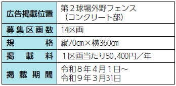 必要書類:伊奈町制施行記念公園野球場広告表示申込書、広告の見本
