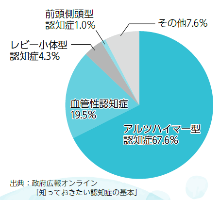 一番多い認知症で、もの忘れから始まり、うつや妄想、徘徊などのさまざまな症状が現れます。