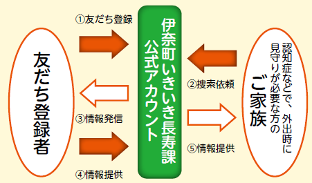 見守り対象者の行方不明情報を発信し、捜索に役立てています。多くの方が登録することで、広域的に捜索し、早期発見することができます。