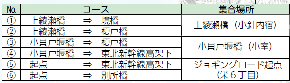 《綾瀬川クリーン大作戦コース一覧表》