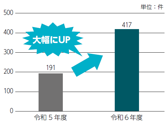 令和6年度は、特に差押えの実施を強化し、令和5年度の2倍以上の件数を差し押さえました。