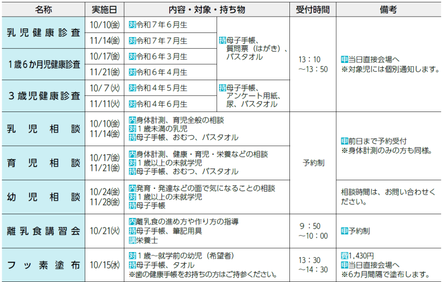 ■母子保健 お母さんと赤ちゃんの健康のために 場所:保健センター