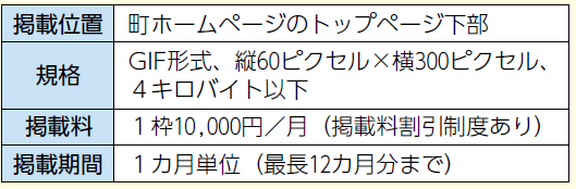 必要書類:伊奈町ホームページバナー広告掲載申込書、広告の電子データ