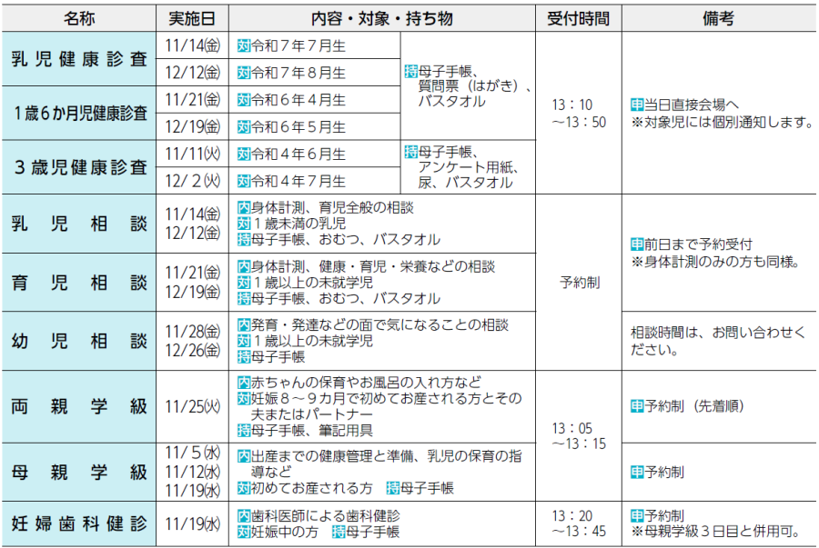 ■母子保健 お母さんと赤ちゃんの健康のために 場所:保健センター