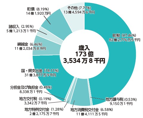 一般会計の歳入決算総額173億3,534万8,571円で、前年度決算に比べ7.2%の増、歳出決算総額は162億108万2,473円で、前年度決算に比べ7.6%の増となっています。出決算総額は162億108万2,473円で、前年度決算に比べ7.6%の増となっています。