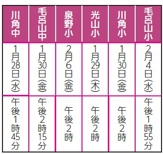 場所:入学予定の小・中学校