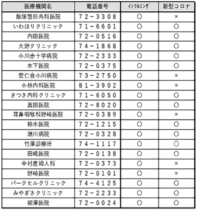 ◆町内実施医療機関一覧