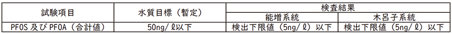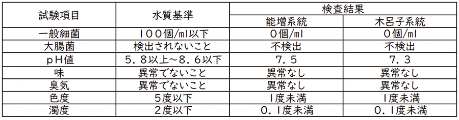 7月8日に実施した水質検査結果(抜粋)をお知らせします。