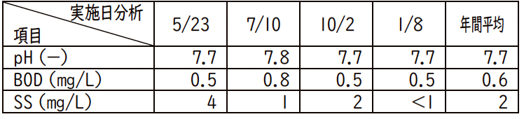 町では、町内を流れる一級河川である槻川、兜川、市野川における水質の汚濁状況の調査を行っております。pH(水素イオン濃度)、BOD(生物化学的酸素要求量)、SS(浮遊物質量)の数値は次のとおりです。