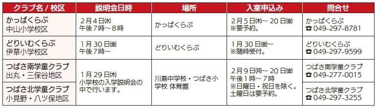 ※保育時間や保育料などは各クラブで異なります。詳細は各クラブへお問合せください。
