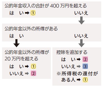 フローチャートで申告の必要の有無をご確認ください。なお、納め過ぎた所得税の還付申告を行う場合は、下の表に関わらず確定申告が必要です。