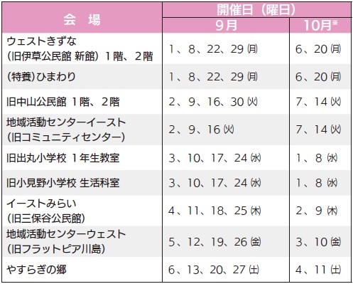 ※…10月半ば以降の開催日については、翌月号でお知らせします。
