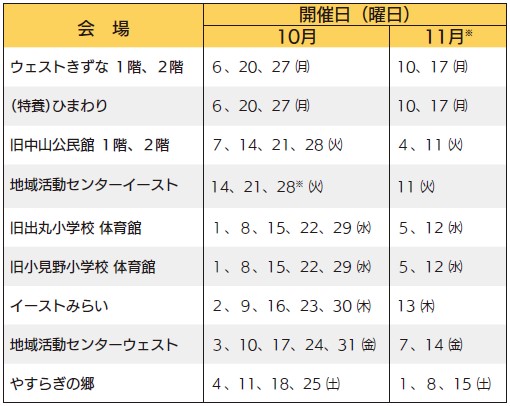 ※…11月半ば以降の開催日については、翌月号でお知らせします。