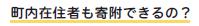 町内在住の方も寄附が可能です。通常のふるさと納税と同様に、所得税・住民税の控除が受けられます(実質負担2,000円)。ただし、返礼品はありません。