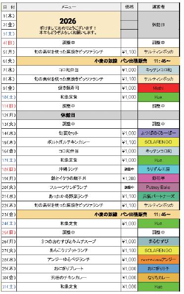 (1⽉)⽇替わりランチカレンダー