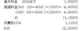 たとえば、2か月で100立方メートルの汚水を排水した場合