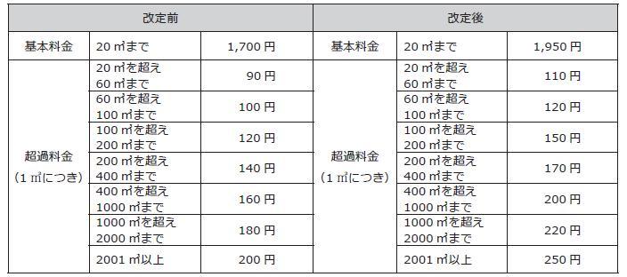 ※継続してご使用されている場合は、1月検針(2月請求)分から新しい料金表(改定後の使用料)が適用されます。