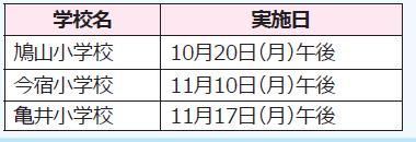 子育て 令和8年度小学校入学予定児童 就学時健康診断を実施します 40/44 前の記事 次の記事 発行日 : 2025年09月01日 自治体名 : 埼玉県鳩山町 広報紙名 : 広報はとやま 令和7年9月号 令和8年度⼊学予定児童の就学時健康診断の実施⽇程をご案内します。各家庭へのお知らせは実施⽇の1か⽉前までに送付予定です。 問合せ:町教育委員会事務局 【電話】296-1227 Tweet シェアする きっずひろば 編・集・室