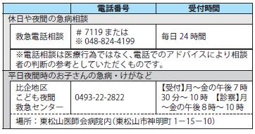くらし 休⽇夜間の急病相談、平⽇夜間のお⼦さんの急病・けがなど 24/46 前の記事 次の記事 発行日 : 2025年11月01日 自治体名 : 埼玉県鳩山町 広報紙名 : 広報はとやま 令和7年11月号 Tweet シェアする 11⽉の休⽇当番医 今宿⼩学校 資源回収のお知らせ