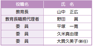 教育委員の町田和子氏が、令和7年9月30日をもって任期満了となり退任され、令和7年10月1日付けで大貫久美子氏が、新たに教育委員に任命されました。