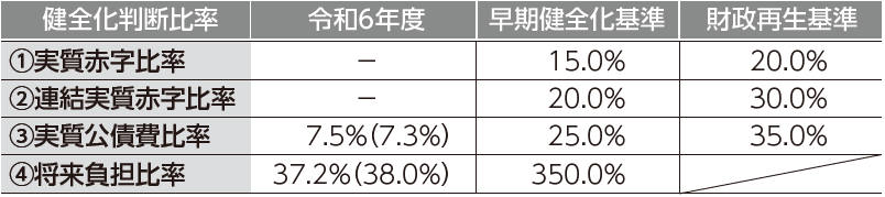 なお、実質公債費比率と将来負担比率の()内は、令和5年度決算に基づく比率になります。