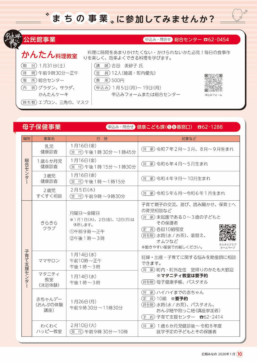 子育て 広報みなの 令和8年1月号 P.10 10/18 前の記事 次の記事 発行日 : 2026年01月01日 自治体名 : 埼玉県皆野町 広報紙名 : 広報みなの 令和8年1月号 Tweet シェアする 広報みなの 令和8年1月号 P.9 広報みなの 令和8年1月号 P.11