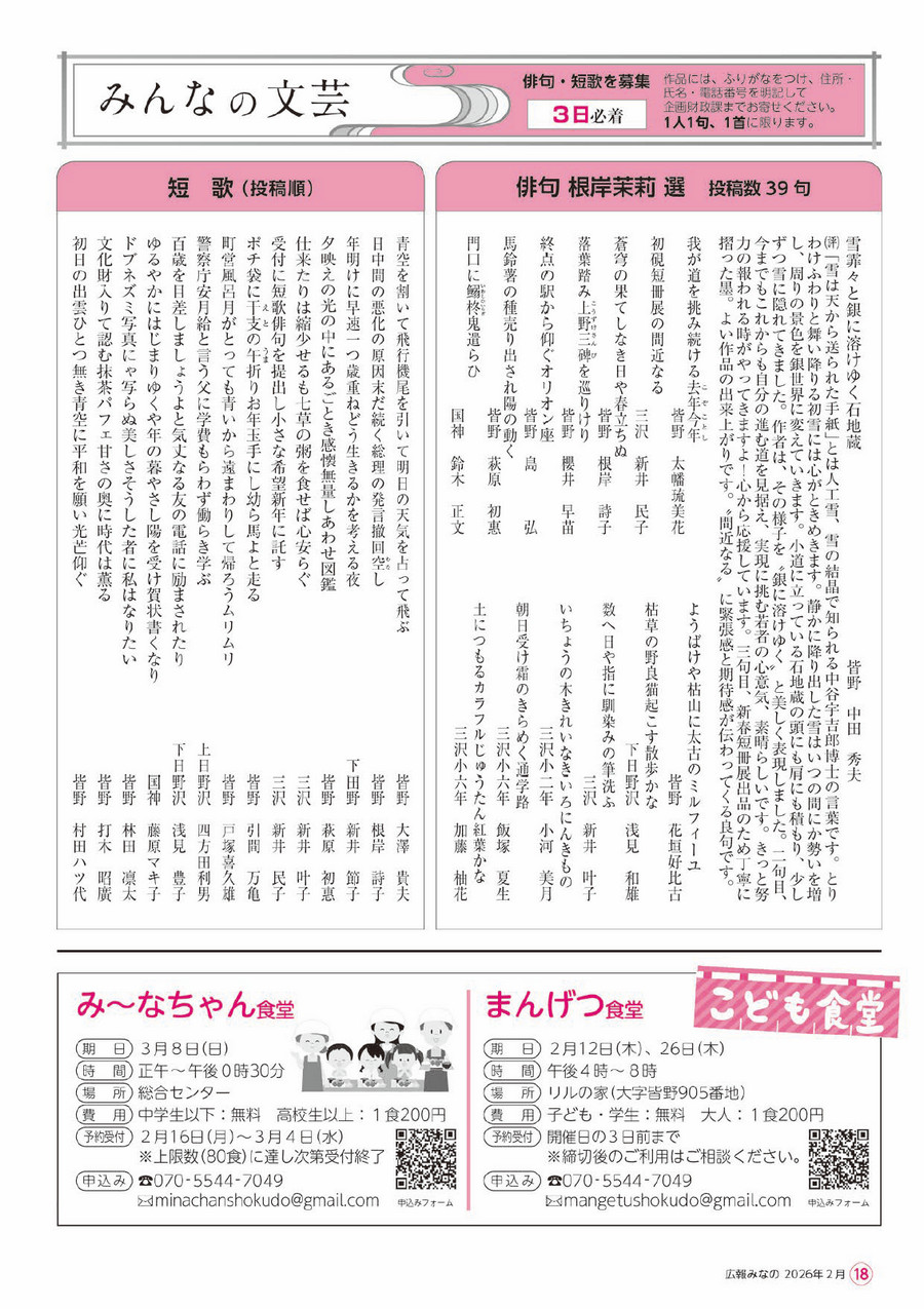 くらし 広報みなの 令和8年2月号 P.18 18/20 前の記事 次の記事 発行日 : 2026年02月01日 自治体名 : 埼玉県皆野町 広報紙名 : 広報みなの 令和8年2月号 Tweet シェアする 広報みなの 令和8年2月号 P.17 広報みなの 令和8年2月号 P.19