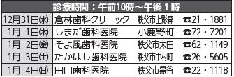 下記の日時に歯科の救急患者の方に対して、当番歯科医療機関で歯科診療(応急処置)を実施します。