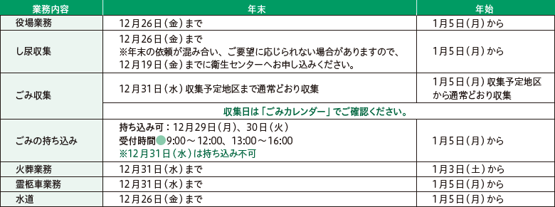 ■年末年始 公的機関等の業務のお知らせ