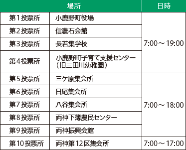 問合せ:小鹿野町選挙管理委員会(役場総務課内)