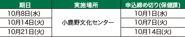 申込み:9月8日(月)から9月24日(水)までに保健課もしくは両神公民館(【電話】79-1311)に電話、又は二次元コードよりお申し込みください。