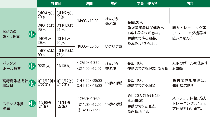 安全に自分に合った運動をするための講習会です。必ず予約をお願いします。予約がない人は初回講習会を受講できません。