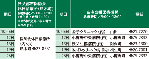 ※平日、休日の救急医療体制については、秩父郡市医師会ホームページでもご確認できます。