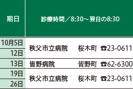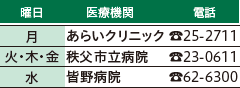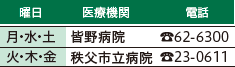 ※医療機関の都合で変更になることがあります。消防署西分署(【電話】72-0119)でご確認ください。