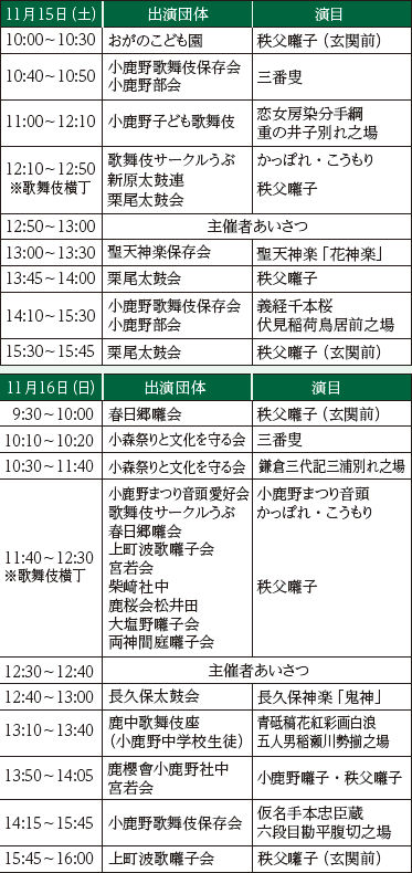 ■小鹿野町合併20周年記念 第53回小鹿野町歌舞伎・郷土芸能祭(11/15・16)