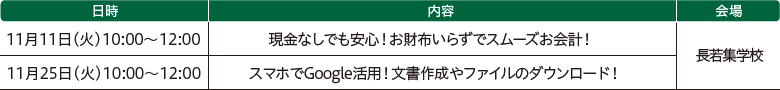 申込み・問合せ:長若集学校