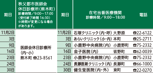※平日、休日の救急医療体制については、秩父郡市医師会ホームページでもご確認できます。