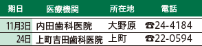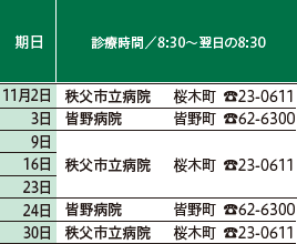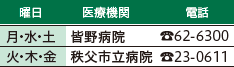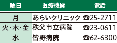 ※医療機関の都合で変更になることがあります。消防署西分署(【電話】72-0119)でご確認ください。
