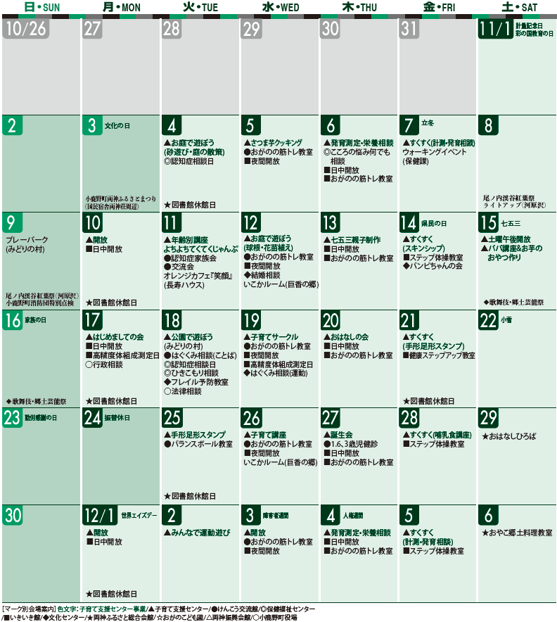 くらし 小鹿野町 生活カレンダー 2025.11 29/30 前の記事 次の記事 発行日 : 2025年11月01日 自治体名 : 埼玉県小鹿野町 広報紙名 : 広報おがの 令和7年11月号 ■今月の納税 ・国民健康保険税 第5期 ・介護保険料 第5期 ・後期高齢者医療保険料 第5期 12月1日(月)までに納めてください。 Tweet シェアする 情報版 -案内- その他のお知らせ(広報おがの 令和7年11月号)