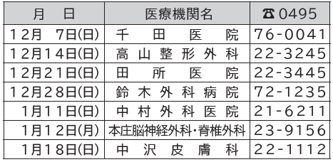 ※当番医は変更になる場合がありますので、確認してからおでかけください。