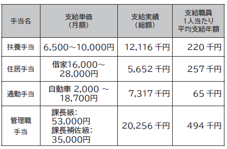 1)職員の平均年齢、平均給料月額および平均給与(給料と諸手当)月額の状況