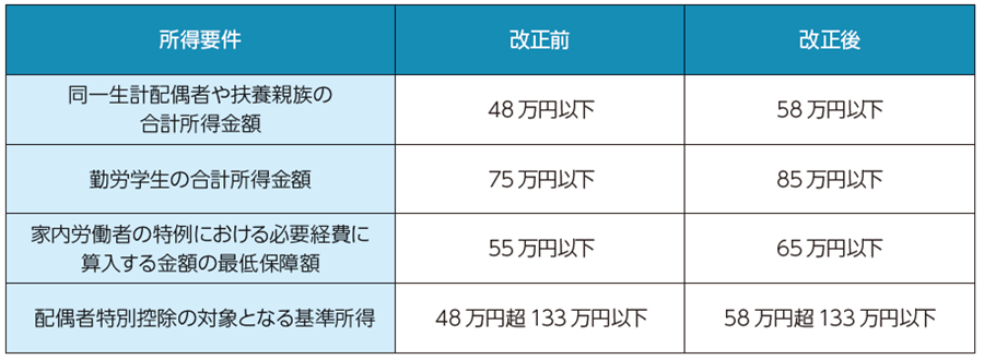 これまで「48万円以下」だった所得の要件が、「58万円以下」に引き上げられます。