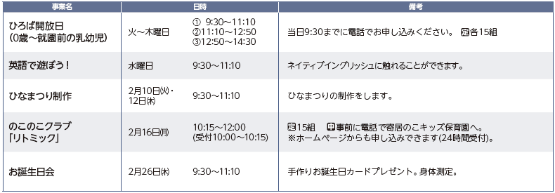問合せ:寄居のこキッズ保育園(露梨子411-1(寄居若竹幼稚園南))