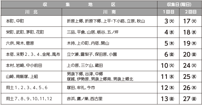 ■3月の可燃粗大ごみの収集日